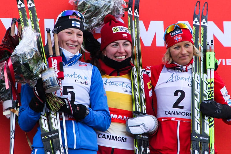 Ingen kunde hota Kowalczyk som var över halvminuten före Anne Kyllönen och Vibeke Skofterud som fick följa med polskan upp på pallen. Herrklassen var betydligt mer spännade. Efter en del växlingar var det till slut Roland Clara som stod för ett avgörande ryck på slutet. Italienaren kunde bara följas av fransmannen Maurice Manificat.