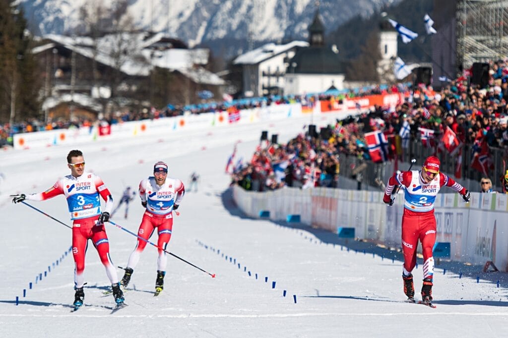 In på upploppet var Röthe precis i rygg på Sundby och passerade lätt och spurtade mot segern. Dock kom Bolshunov mycket starkt och det var snudd på så att norrmannen var lite för säker på segern – men seger med en tiondels marginal blev det.