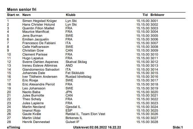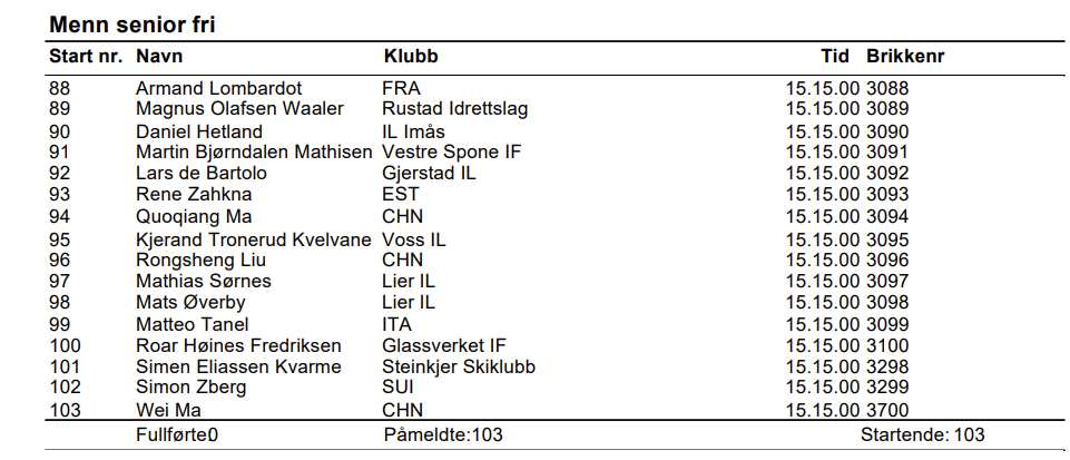 • Startlistor och starttider söndag