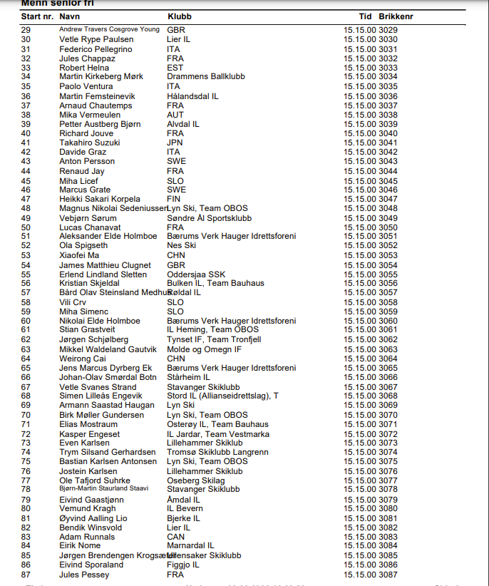 Här är startlistan för herrarnas lopp i sin helhet: