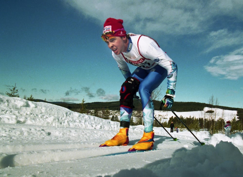 — Det där testet med pappa gjorde att jag förstod att jag fixade backen och att jag inte skulle tappa så mycket, säger Larsson som när det väl var skarpt läge den första söndagen i mars 1994 var ikapp tätduon efter Smågan och i körningarna mot Mångsbodarna gick en med knäskydd försedd Larsson loss.