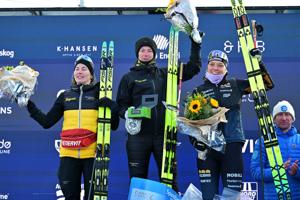 – Fast jag försökte sätta upp spurten för min lagkompis Hanna Lodin, säger Alnæs, som kunde se att Lodin spurtade in som tvåa, precis bakom.