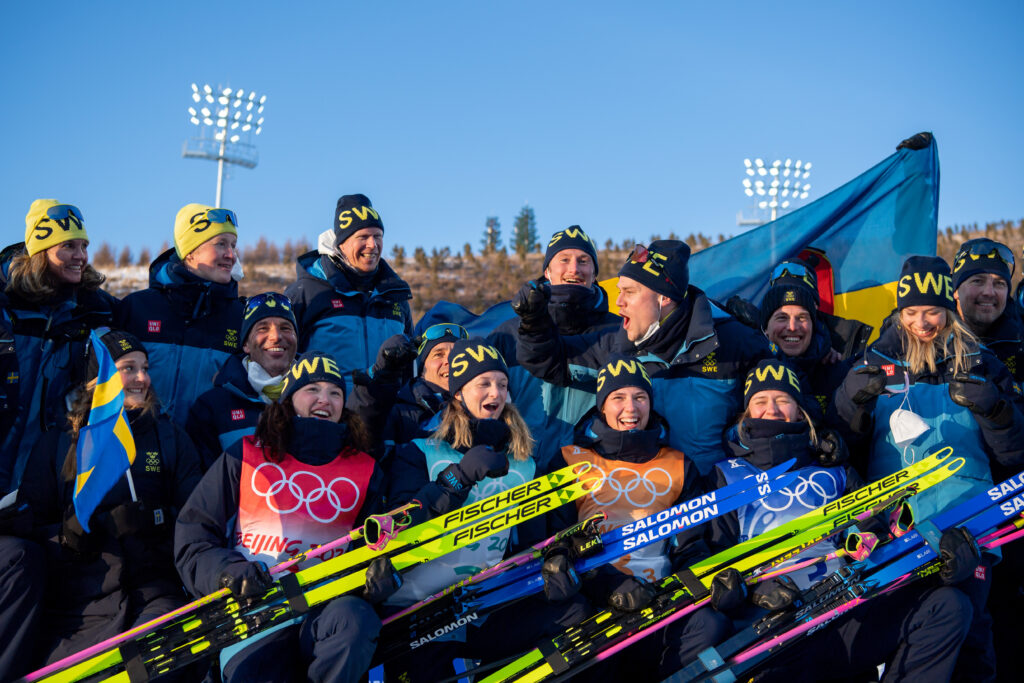 – Jag har två favoriter. Det ena som var en sån overklighetskänsla, det var på mitt första OS när det var lite skräll att vi damer tog medalj. Vi hade varit på pallen några gånger så de fanns ju chans. Att vi då står det med medaljer runt halsen och sedan tittade vi på herrarnas stafett och de vann det loppet. Det var liksom ”händer det här verkligen, är jag med på det här?” Det var nästan att jag såg händelsen utifrån. Det var som att jag inte riktigt kunde ta in den euforin i målfållan när alla samlades, det var riktigt coolt.