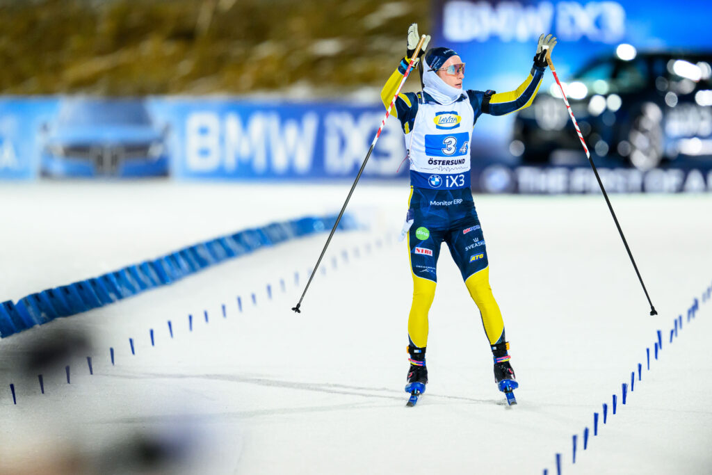 Jesper Nelin stod för en stark insats och använde bara två extraskott. Martin Ponsiluoma använde fem extraskott totalt men klarade sig undan straffrunda och skickade ut Sebastian Samuelsson 1 minut och 26 sekunder från täten.