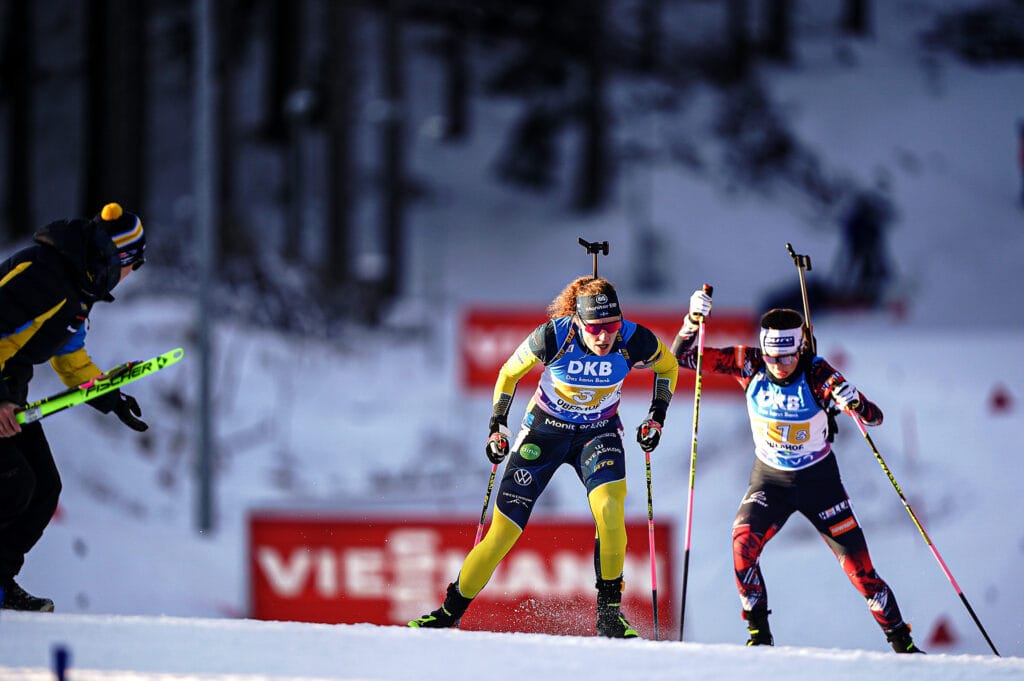 Därmed jagade lördagens trea Elvira Öberg segrarinnan Lou Jeanmonnot för Frankrike och tvåan Maren Kirkeeide för Norge.