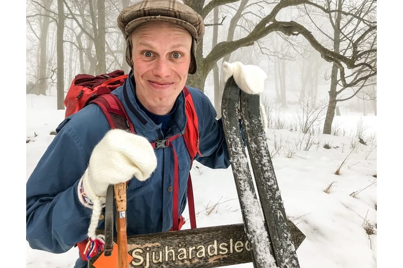 I lördags åkte skidprofilen Erik Wickström en helt ospårad vandringsled mellan Ulricehamn och Borås med turskidor, bambustavar, ryggsäck och kläder från förr. En sträcka på 44 kilometer som tog drygt sex timmar.