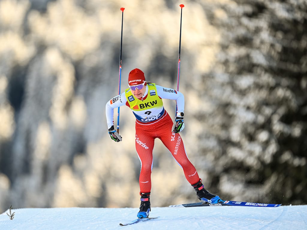 Nadine Fähndrich sken ikapp med solen när hon vann sprinten i Davos. Likt de andra loppen körde hon starkt i den sista backen och kunde hålla luckan hon fick in i mål.