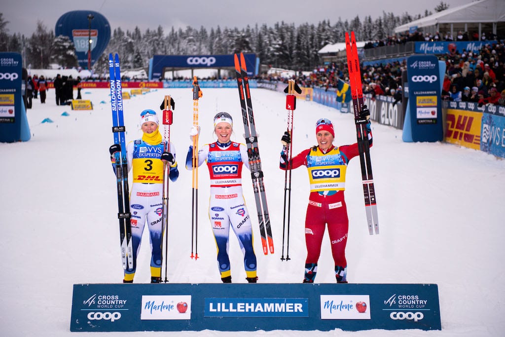 Emma Ribom tog karriärens andra världscupsseger när hon spurtslog landsmaninnan Maja Dahlqvist. Norskan Tiril Udnes Weng slutade trea.